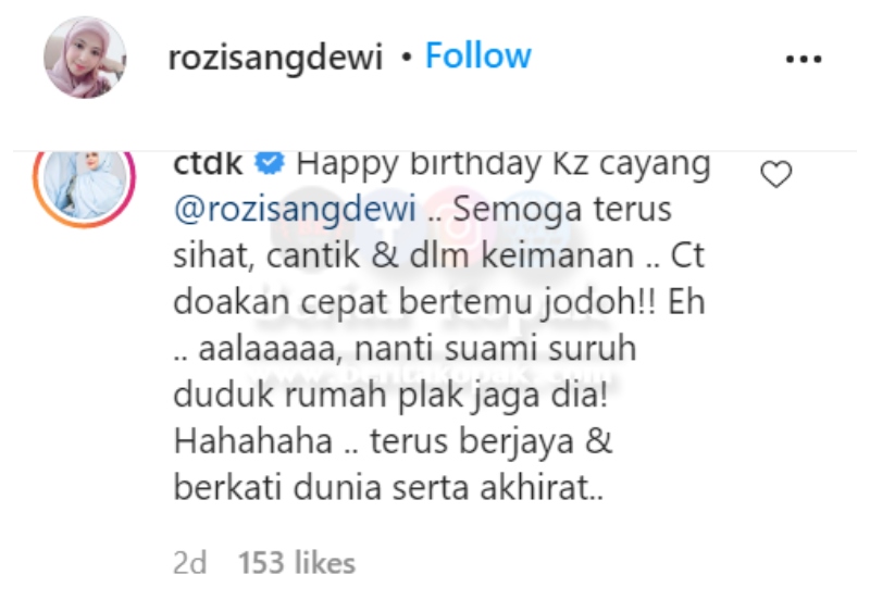 Rozi Abdul Razak Kongsi Gambar Dan Ucapan Sempena Hari Lahirnya. Namun Komen Ucapan Daripada Datuk Siti Nurhaliza Cur1 Perhatian Netizen. Semoga Yang Terbaik Buat Rozi !!