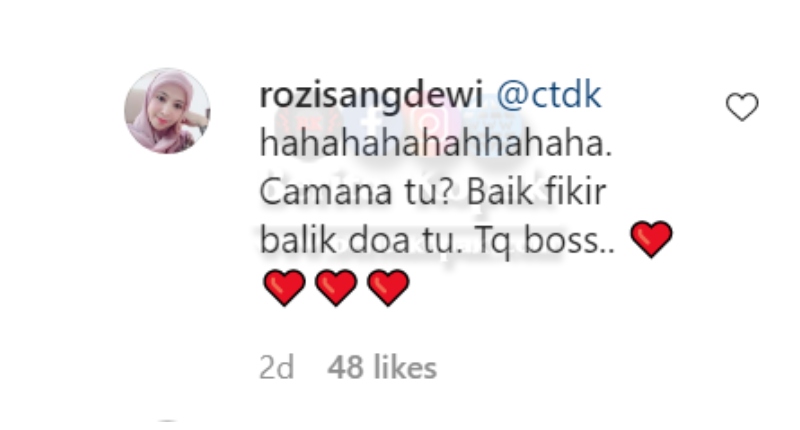 Komen daripada Datuk Siti Nuhaliza tersebut turut mendapat balasan oleh Rozi