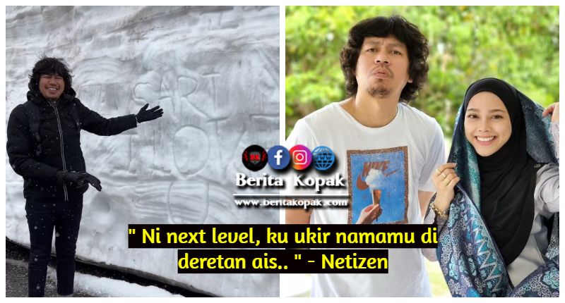 Jep telah mengukir perkataan ‘ Sari I Love U’ pada dinding salji yang menebal. Jarang sekali Jep berkongsi ungkapan ini di ruangan media sosialnya khas buat isteri tercinta. Sesekali bersikap romantik apa salahnya kan. Nampak sweet sangat Jep ini.