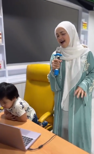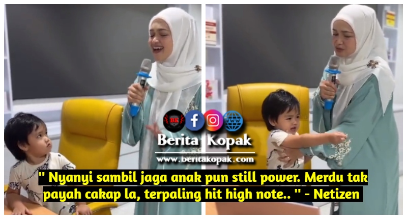 ” Nyanyi sambil jaga anak pun still power. Merdu tak payah cakap la, terpaling hit high note.. ” – Netizen