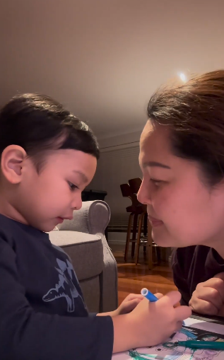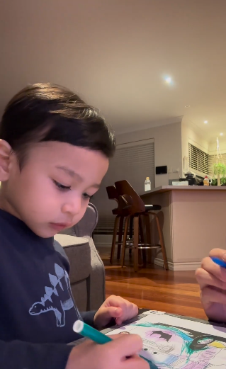 Banyak video yang dikongsikan oleh Maslinda ketika Isaac berada di sana dan salah satunya adalah ketika mereka berdua membuat aktiviti mewarna bersama-sama. Meninjau akaun Instagram Maslinda Yusoff, telah dikongsikan moment indah itu.