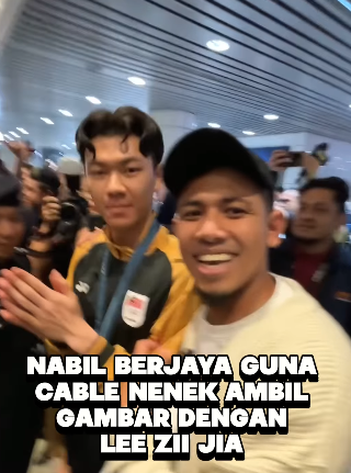 Apabila Lee Zii Jia tiba di KLIA, Nabil ‘mempergunakan’ nenek Lee Zii Jia untuk membawanya ke hadapan ramai orang. Secara automatik, orang ramai mula memberi laluan kepada nenek Lee Zii Jia dan Nabil turut serta ke ruangan hadapan.