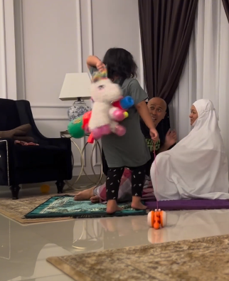 Selepas itu, mereka bersalaman dan tiba-tiba suara Tiara menjer1t memanggil ayah. Bukan setakat suara, gaya Tiara itu seperti g4ngster kampung pisang. Tiara siap membawa mainan siput dia lagi. Melihat aksi Tiara dan reaksi wajah Achey yang cuak membuatkan warganet tergelak besar.