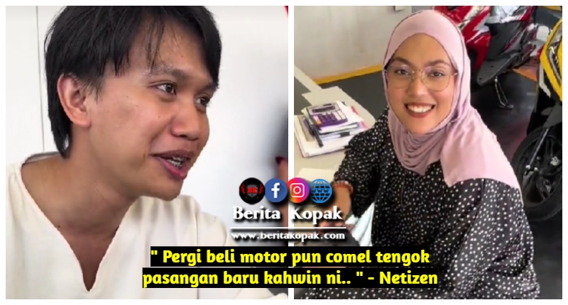 ” Pergi beli motor pun comel tengok pasangan baru kahwin ni.. ” – Netizen