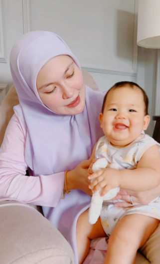 Mona yang berjubah dan bertudung labuh semakin cantik dipandang mata. Sorotan mata warganet tertumpu kepada baby Petra yang masih kekal ‘bulat’ dan chubby badannya itu. Dengan pipi yang labuh dan dagu double chin, Petra kelihatan comel sekali.