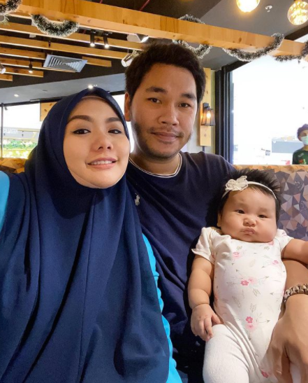 Anim yang bertelekung dilihat memegang Khalsom yang baru berusia 4 bulan lebih. Si kecil Khalsom nampak begitu selesa apabila berada di sisi ibu tercinta. Suami Anim juga turut sama memanggil-manggil Khalsom dengan panggilan manja ‘Acom’.