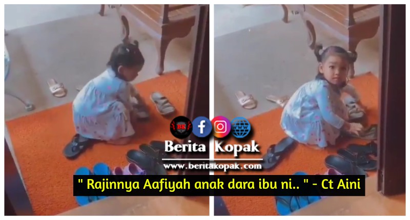 Alahai comel sangat cara susunan Aafiyah ini. Tersusun kiri dan kanannya walaupun ada yang terp1sah. Tentu puas hati Aafiayah dapat menyusun selipar dan sandal tersebut, dapat dilihat dari gayanya selepas berjaya melakukannya. Apa pun, kami di Berita Kopak berharap agar Aafiyah sentiasa ceria selalu dan senantiasa dilindungi Allah dan menjadi anak yang solehah buat keluarga.