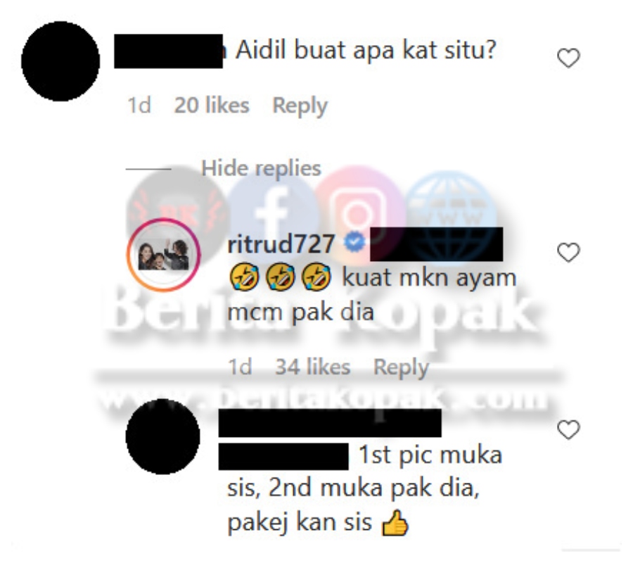 Malah Rita juga turut membalas komen salah seorang peminatnya dengan mengatakan anaknya suka makan ayam seperti Aidil :