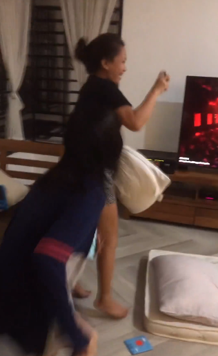 Lagi bertambah riuh rumah dengan sorakan mereka bertiga apabila topeng Bunga Matahari dibuka. Seronok warganet melihat betapa saling mendokong antara satu sama lain dalam keluarga Stacy dan Akim ini. Mummy berjuang di pentas TMSM4, daddy pula berjuang menjaga anak-anak di rumah.