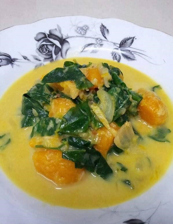 Masukkan pati santan dan tambah secubit gula serta garam secukup rasa. Biar mendidih perlahan hingga labu empuk dan pucuk manis lembut. Rasa dan jika ok boleh matikan api.