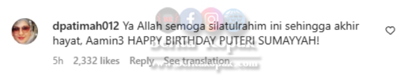 Ini pula komen Datin Patimah yang ditinggalkan di ruangan komen :