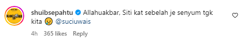Ini kerana terdapat sekeping potret arwah Siti Sarah di hujung gambar keluarga ini seolah-olah arwah masih ada. Tambahan pula Shuib turut men1nggalkan satu komen yang berbunyi ‘ Allahuakbar, Siti kat sebelah je senyum tengok kita ‘.