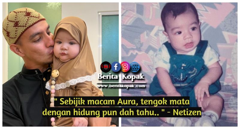 Sebelum ini, ramai menyatakan Aura memiliki wajah ibunya tetapi biasalah anak perempuan selalunya banyak mewarisi wajah bapa. Jika diletakkan gambar Aura dan bapanya ketika kecil ini pastinya sukar untuk membezakan. Memang c0py paste sangat.