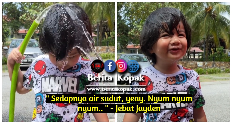 Video Jebat Jayden Yang Teruja Bermain Air Getah Paip Buat Netizen Terhibur. Part Yang Cakap Air ‘ Sudut’ Tu Kelakar, Siap Minum Lagi Air Tu. Tak Pernah Tak Comel Jebat Ni !!