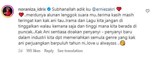 ” Banyak lagu kak ani yang sedap2 and underrated. Kak Ani Ratu Irama Malaysia selamanya. Tq ernie sbb sudi nyanyi lagu kak Ani .. “