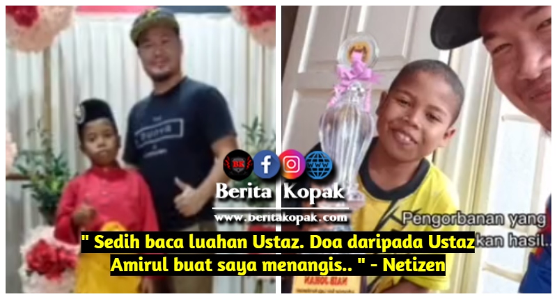 Apa yang menarik perhatian warganet adalah ucapan yang dicoret oleh Ustaz Amirul untuk Amir. Sayu dan penuh bermakna untuk anak didik yang disayangi. Ustaz Amirul juga turut berkongsikan video throwback nyanyian Amir ketika memenangi Naib Johan Nyanyian Solo Kerohanian KAFOA Kebangsaan 2021.
