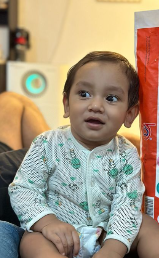 Meninjau akaun Instagram Usop, telah dikongsikan sekeping gambar yang memaparkan gambar terkini Teha bersama Saif Umar. Si kecil ini mewarisi sepasang mata yang bulat dan hidung yang mancung saling tak tumpah seperti wajah mommynya.