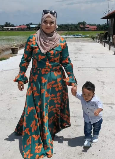 ” Pandainya bergaya, handsome macam orang bujang da. Muka macam ayahnya la. Cepat cepat besar ye leh jaga ibu awk lak nanti.
