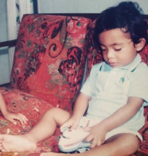 Kelihatan Hamzah yang segak dipakaikan kemeja petak-petak berwarna merah dan biru dan berseluar jeans. Melihat gayanya itu saling tidak tump4h seperti arw4h Abam. Jika dilihat gambar Abam ketika kecil memang sama rupanya dengan Hamzah sekarang.
