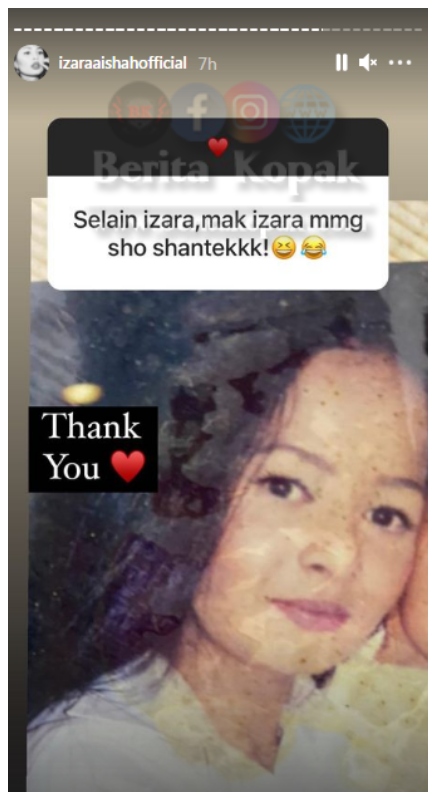 Dalam salah satu soalan tersebut, ada yang memuji wajah ibu Izara, Puan Shafina Khalid yang dikatakan cantik. Izara membalasnya dengan ucapan terima kasih dan sekeping gambar lama ibunya itu disertakan untuk tatapan peminat.