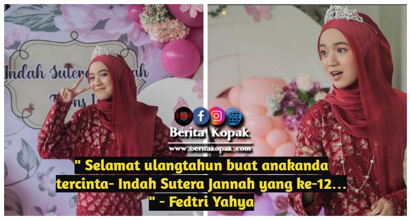 ” Selamat ulangtahun buat anakanda tercinta, Indah Sutera Jannah yang ke 12.. ” – Fedtri Yahya