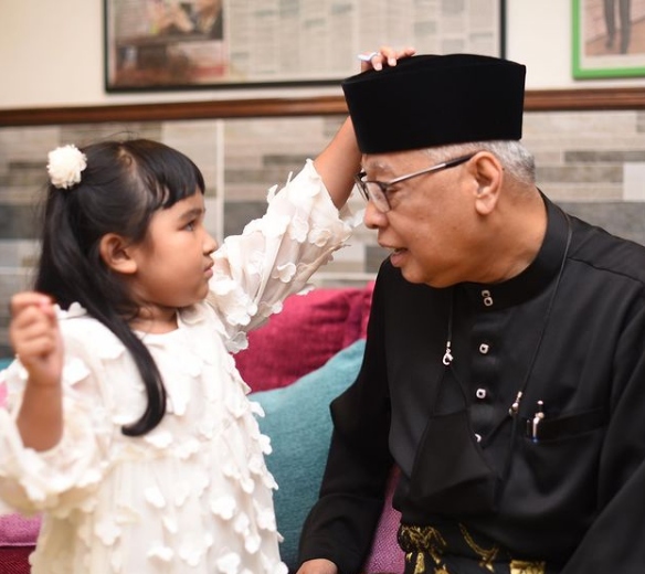Comel sangat melihat gelagat atok dan cucu ini. Nampak begitu semangat Dato’ Seri Ismail menyanyi sambil Jeanelle juga turut mengikut gaya atoknya. Momen sebegini pasti menjadi kenangan.