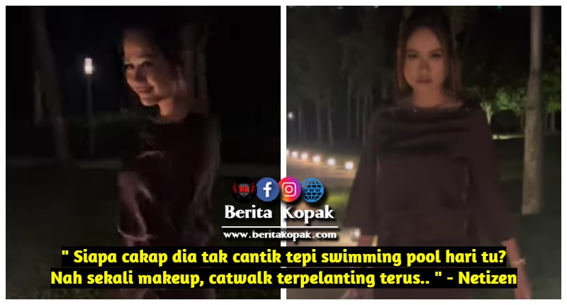 ” Siapa cakap dia tak cantik tepi swimming pool hari tu ? Nah sekali makeup, catwalk, terpelanting terus.. ” – Netizen