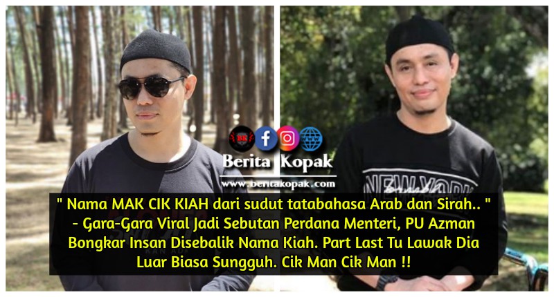 Menerusi akaun Instagram, PU Azman telah berkongsikan cerita tentang maksud nama Kiah dari segi tatabahasa Arab dan Sirah. Kec0h semalam apabila nama Mak Cik Kiah dijadikan contoh ketika perutusan ransangan ekonomi membuatkan nama Kiah tul4r hingga wujud h4shtag #makcikkiah oleh warganet.
