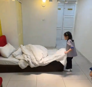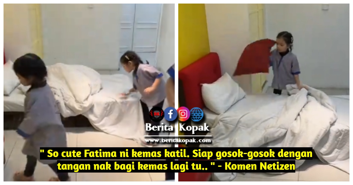 ” So cute Fatima ni kemas katil. Siap gosok-gosok dengan tangan nak bagi kemas lagi tu.. ” – Komen Netizen