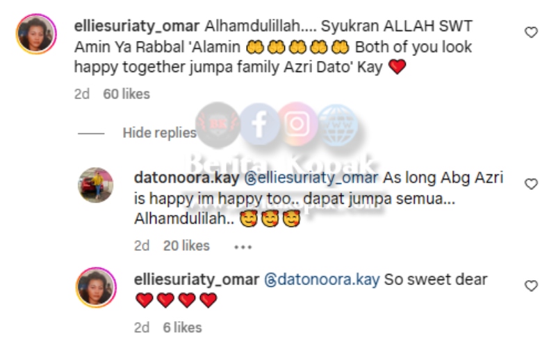 Elly Suriaty juga turut meninggalkan komennya di posting oleh Dato’ Noora ini.