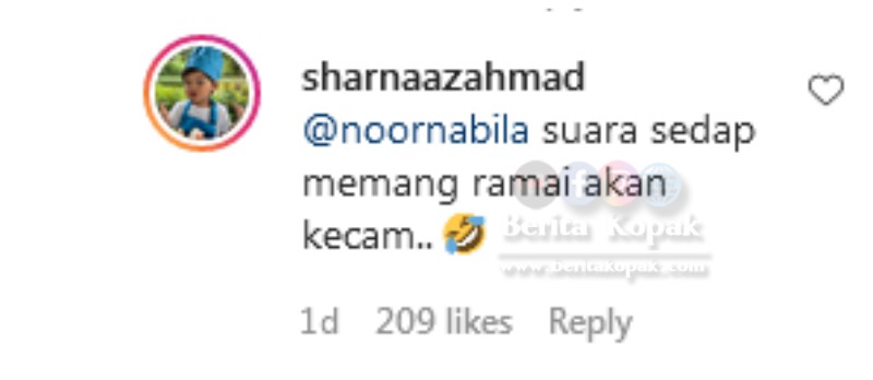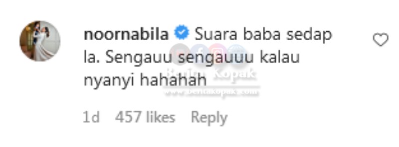 Noor Nabila juga tidak ketingg4lan meningg4lkan komennya terhadap perkongsian daripada Sharnaaz itu. Amboi mommy sempat lagi menyak4t Baba yer.