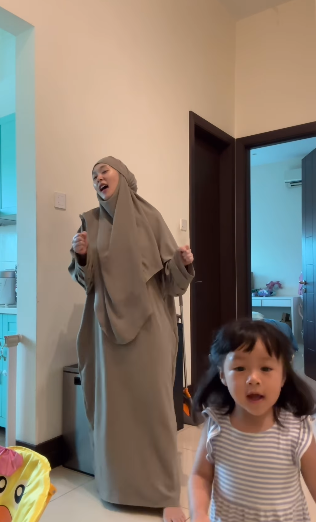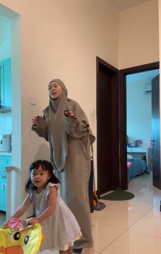 ” Mak nya yg lagi excited Love u both.. Adoi adorable nya Rina mulut tu comei sungguh mama tercute maryam .. pandainya Rina nyanyi .. “