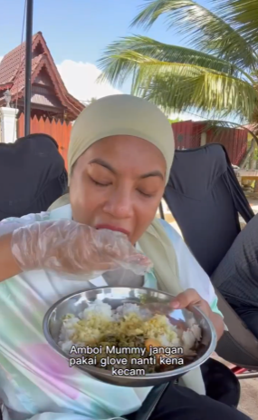 ” Sump4h lawak haha. Amboi mommy makan pakai glove, nanti kena kec4m haha.. Cute nya Wira voice.. “