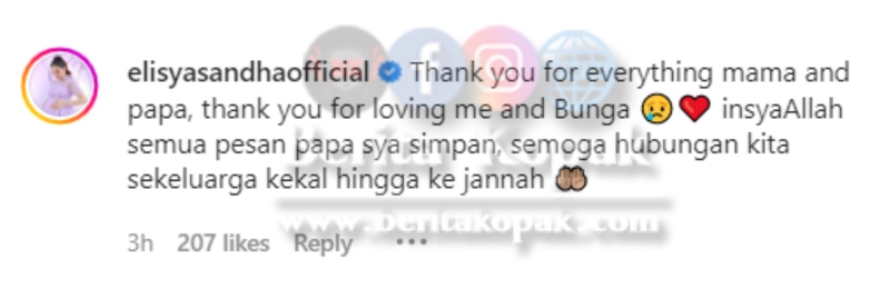 Respon Elisya di ruangan komen :