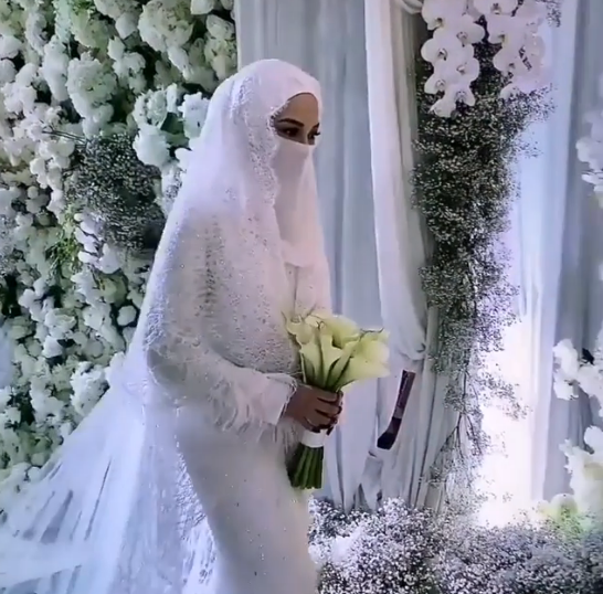 Kehadiran si cantik manis Neelofa dalam busana Abaya putihnya memang nampak cantik sekali. Dari pandangan matanya sahaja, terpancar kegembiraan dan kebahagiaan kesayangan ramai ini. Bacaan doa juga turut dibacakan oleh Haris sebelum akad nikah dimulakan.