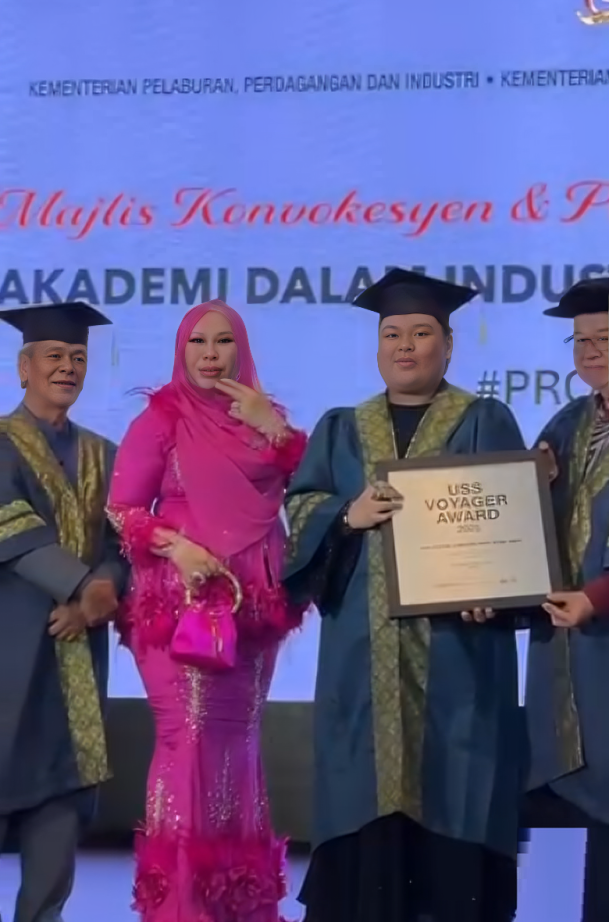 Cik B kini graduan UTMSPACE dan menerima pencapaian membanggakan dalam Professional Diploma in International Communication ( LEB ) serta Professional Certificate in Innovation and Strategy. Ramai yang memberikan sorakan semangat kepada Cik B ketika Cik B naik ke pentas.