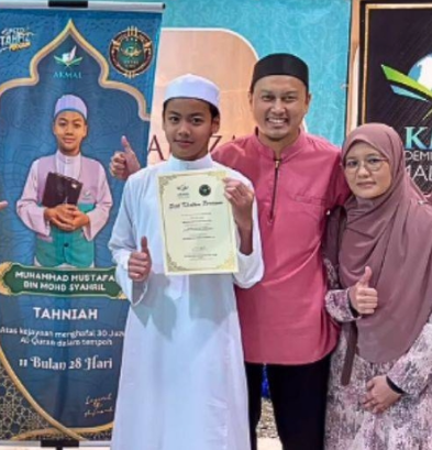 Kegembiraan terpancar pada wajah Syah Inteam dan isteri atas kejayaan anak mereka ini. Seorang anak bergelar Hafiz Al-Quran, itu impian ramai ibu bapa. Pastinya Mustafa juga merasa puas kerana impian kedua ibu bapanya untuk dia bergelar Al-Hafiz tercapai.