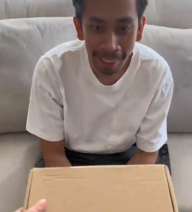 Kotak tersebut kemudian diberikan kepada suaminya dan meminta suaminya membuka kotak itu. Reaksi yang diberikan oleh Amirul terhadap kejutan tersebut membuatkan ramai terhibur. Amirul bertanya apakah benda di dalam kotak itu dan ia tidak memahaminya.