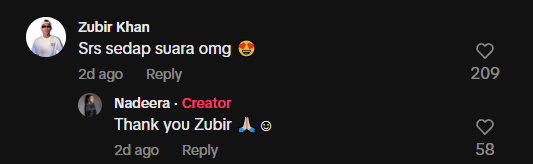 ” Tak expect Nadeera cover lagu ni. Best betul versi macam india klasik, meremang weh.. ” – Komen Netizen