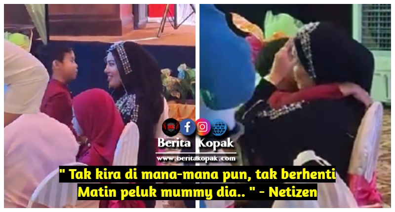 ” Tak kira di mana-mana pun, tak berhenti Matin peluk mummy dia.. ” – Netizen