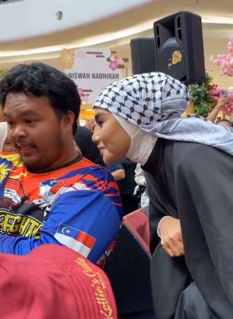 Ketika Ella menghulurkan microphone, adik ini turut menyanyi dan spontan menangis. Hanya peminat tegar sahaja yang tahu perasaannya apabila artis pujaan berada depan mata. Dapat pula layanan yang baik seperti yang Ella lakukan, lagi laju lah air matanya jatuh.