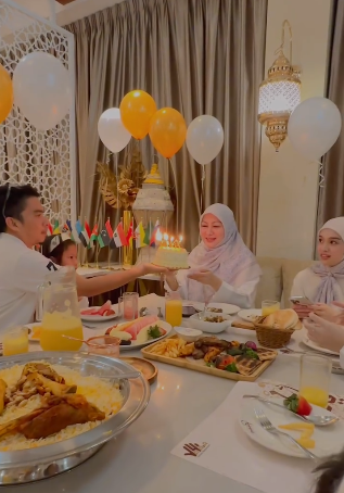 Semua memakai baju bertemakan warna putih dan kelihatan gembira. Marissa Dania Hakim juga turut bersama-sama meraikan Abby. Sambutan yang simple sahaja, namun membahagiakan hati Abby dan keluarga. Sememangnya keluarga adalah keutamaan untuk Abby.