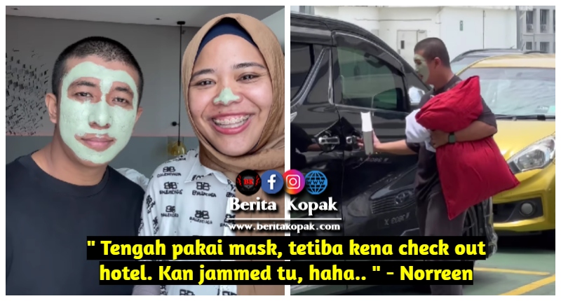 ” Tengah pakai mask, tetiba kena check out hotel. Kan jammed tu, haha.. ” – Norreen