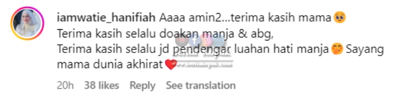 Di ruangan komen, rata-ratanya turut mengambil kesempatan memberikan kata ucapan buat Watie. Antara komen-komen menarik adalah :