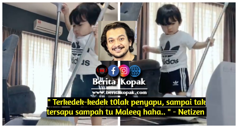 Melihat gelagat Maleeq menyapu dan terhoy0ng-hay4ng ketika ingin memegang skop samp4h membuat peminat terhibur. Habis keliling rumah disapu ye Maleeq, senang hatilah mommy ada pembantu yang rajin macam Maleeq.
