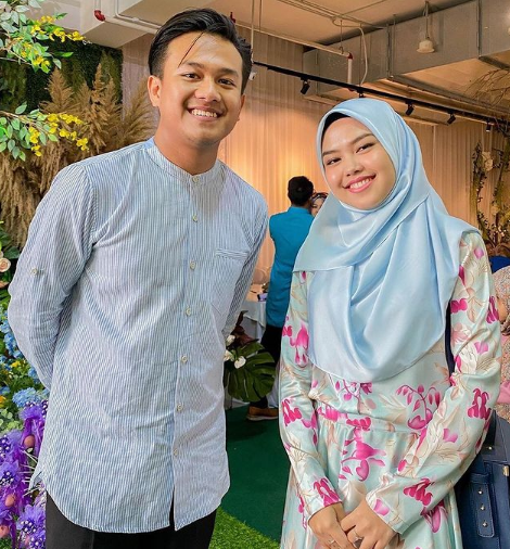 Dengan tema biru laut, kedua-duanya nampak cantik dan segak sekali. Kegembiraan jelas terpancar pada wajah pasangan merpati dua sejoli ini. Azzam juga menulis di kapsyennya rasa kesyukuran ke hadrat Ilahi dan tertulis tarikh 30.09.2021 officially engaged.