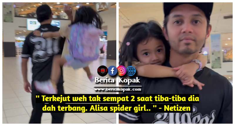 Melihat gelagat Alisa bersama Hairul membuatkan warganet terpegun. Alisa memang diketahui lasak orangnya dan kali ini Alisa menunjukkan skill ‘terbang’. Tak sampai 2 saat Alisa sudah berada di atas belakang daddynya. Hebat lah Alisa, mesti daddy training ala-ala paskal dekat rumah.