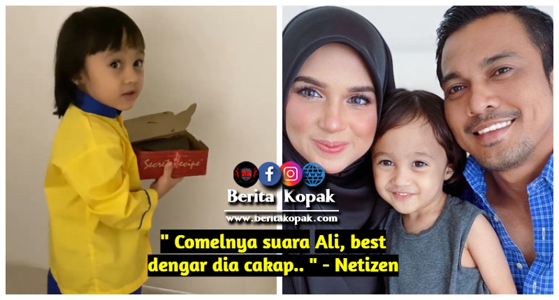 Apa yang menarik perhatian aksi anak mereka Ali dengan keletah comel membuatkan suasana lebih meriah. Ali kelihatan terlebih excited daripada ibunya. Bukan main lagi aksi suruh babanya buka mata tu, sweet sangat. Bukan itu sahaja, Ali juga memberikan kad ucapan hasil tangannya kepada baba.