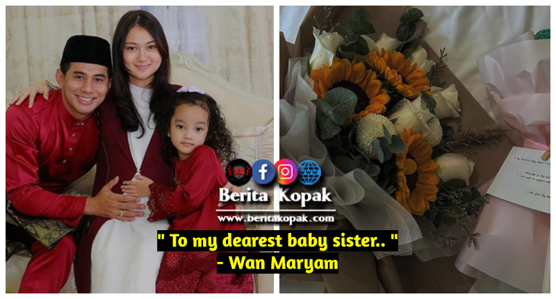 Rupanya jambangan bunga itu adalah hadiah daripada Wan Maryam kepada adik yang baru dilahirkan. Perkongsian itu telah menjadi perhatian warganet kerana tertera nama anak kedua pasangan ini iaitu Khaleeda.