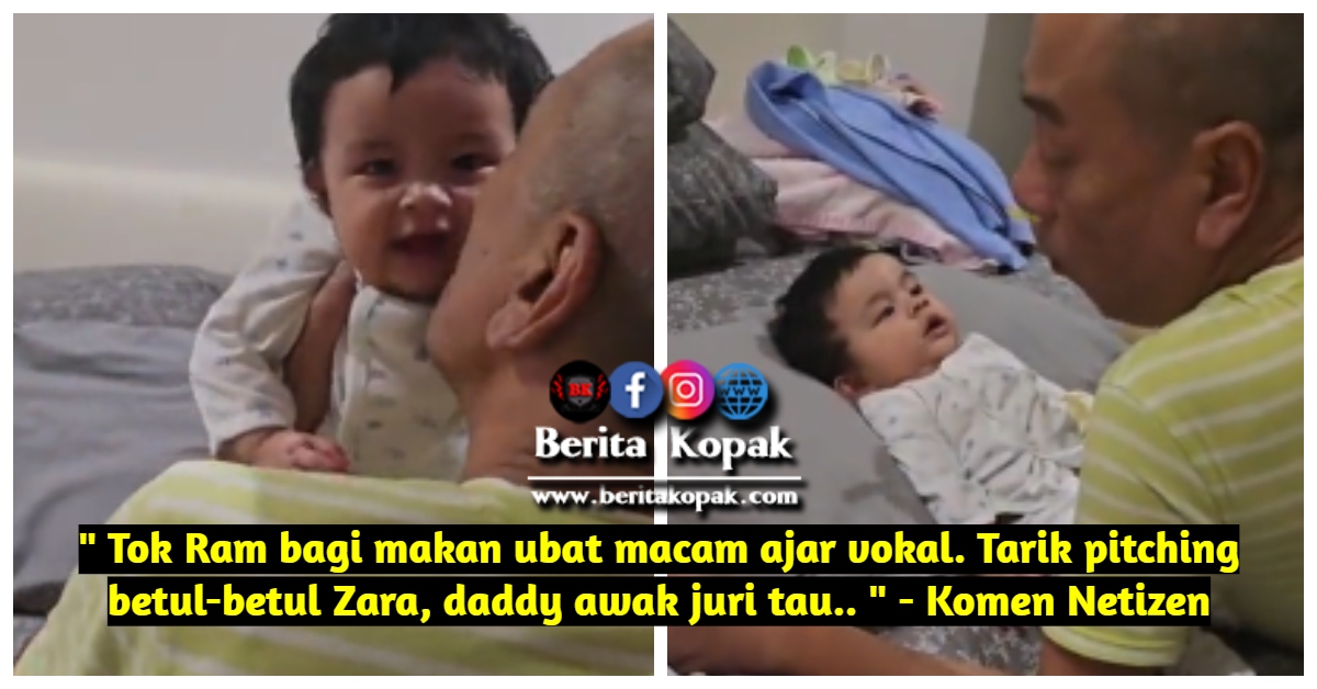 Gelagat Tok Ram menyuruh Zara membuka mulut sambil menyebut perkataan ‘ aaa ‘ menggeletek hati warganet. Mentang-mentang lah expert dalam perihal vocal, cara Tok Ram itu sudah seperti mengajar Zara kelas vokal pula. Untung Zara, Tok Ram puji Zara nombor satu, kalah mommynya.
